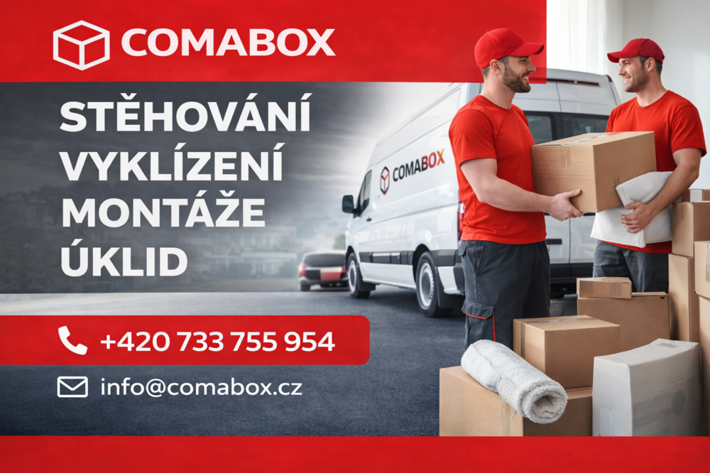 COMABOX nabízíme služby v oblasti stěhování, vyklízení, montáží a úklidu. Zajistíme rychlé a bezpečné stěhování bytů, domů i kanceláří. Provádíme kompletní vyklízení nemovitostí včetně odvozu odpadu. Nabízíme také montáž a demontáž nábytku a následný úklid prostor, aby vše bylo připraveno k okamžitému použití. Ke každé zakázce přistupujeme individuálně a dbáme na pečlivost, spolehlivost a férové ceny. Stěhování bez starostí Úklid a vyklízení Montáže a demontáže nábytku Rychlé a spolehlivé služby Neváhejte nás kontaktovat – rádi vám připravíme nezávaznou nabídku.