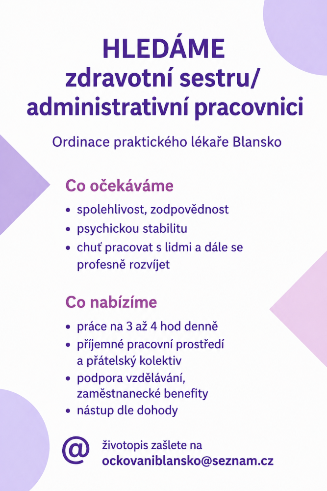 Hledáme zdravotní sestru/administrativní pracovnici